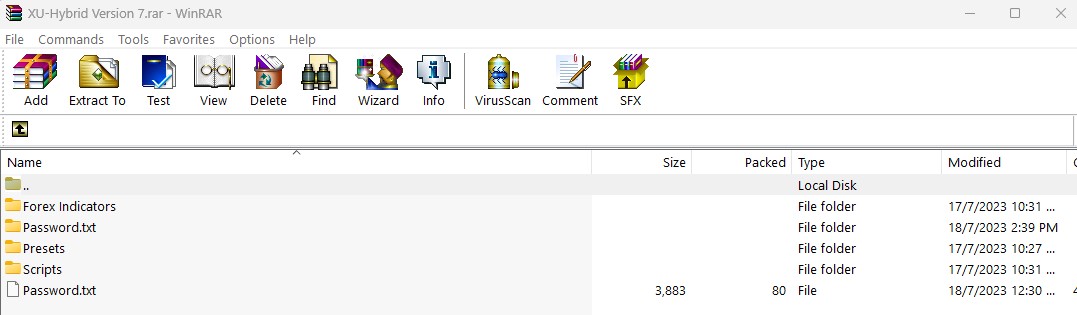 The infected files downloaded from here has this content as shown. The file content clearly shows that files in the RAR file are created on 17th and 18th of July 2023. So, we might want to be careful with files from those dates onwards.