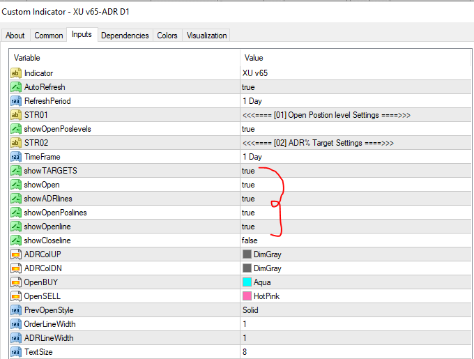 1) In the indicator settings, turn go to the ADR indicator and set all lines except "ShowCloseLines" to true. This way it is easier to see areas of interest. If you look at where you were trading, you were just above the area for buy entries; look to the right of the chart and you will see "Buy", "Open" and "Sell". I used to trade solely off those levels when there was a corresponding MA crossover and it worked well but often stopped me out before continuing the trend. Combine those areas of interest with 2nd dot entries and your win rate will improve.