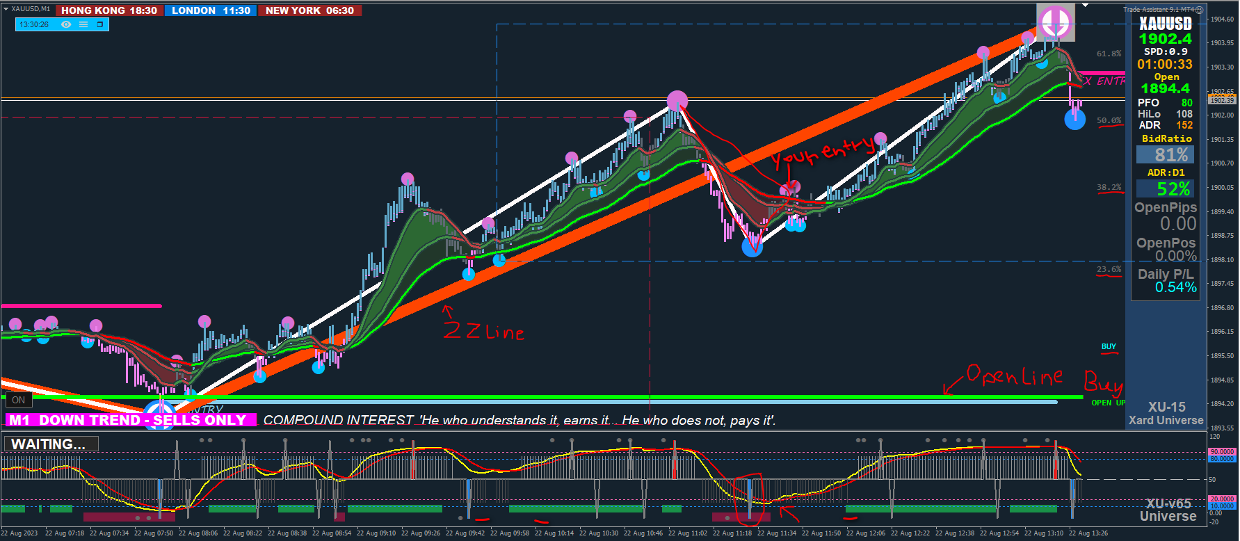 No worries man. Yeah, you always want to be extra careful when trading Gold. Especially on a 1M timeframe. It's easier to say what one should've done in hindsight so I'll try my best to pretend I only see this chart up until when the bearish crossover happened.Maffe wrote: Tue Aug 22, 2023 7:15 pm Thank you very much, I was refering to the current price. I took an entry and unfortunatly it was a loss, but please enlighten me if it was not according to the rules