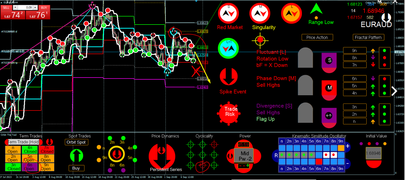Regarding @Italian's work... I don't want to offend him in any way, but it doesn't impress me. Sorry again... I'll explain why... Firstly, I was never interested in memorized and meaningless repetition of something after the teacher. What he does is simply look for an equivalent semaphore in the direction of the first level command. This is the so-called "second dot" technology and it was not invented here and was discussed several years earlier in one very well-known thread on the FS. I don't need Orbit for this. For such an implementation, a semaphore (or zigzag) indicator will be enough for me, and I can replace the first level command using a standard Fibonacci extension and will end up in the same trades as he does. I am not interested in jumping through different instruments in search of where today the second semaphore dot will coincide with the direction of 6n TT and 6n Cy. Instead, I prefer to work with any one instrument. I prefer to read space and understand exactly where I am now and how this space can be changed in the future.
