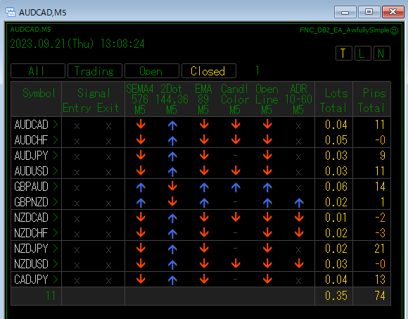 The EA was run with the currency pair "T".