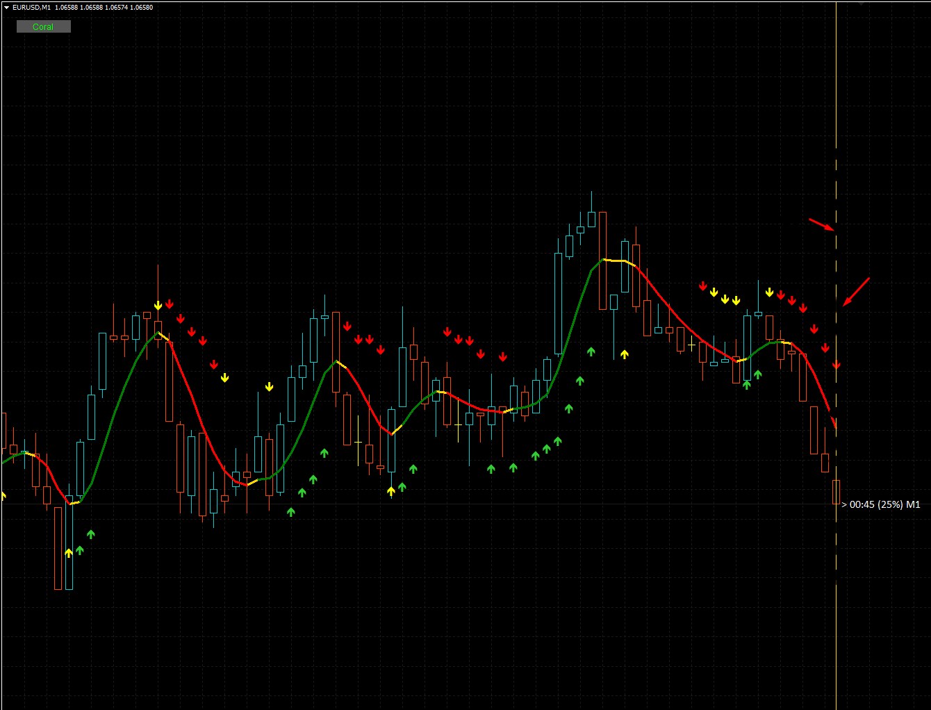 Please make the vertical line dotted and, if possible, make it the same color as the current candle. Thank you!