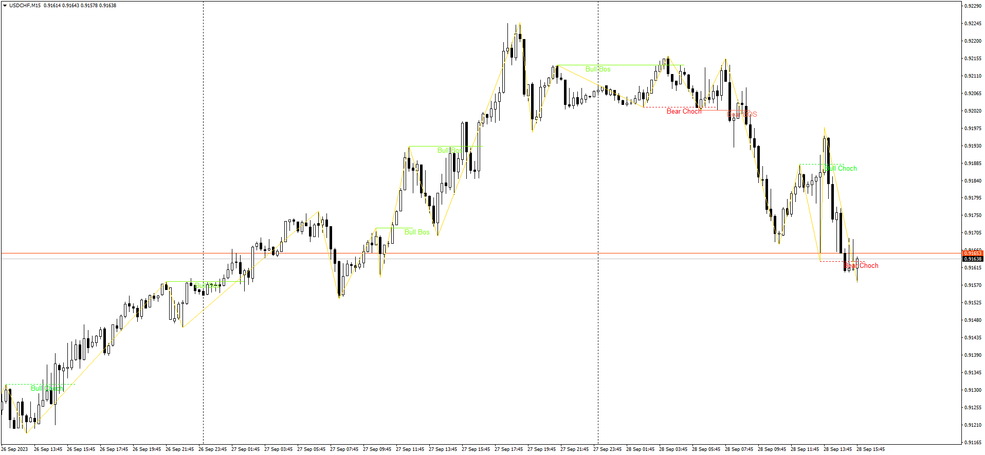 BOS = Break of Structure or "breakout of the support or resistance lines"