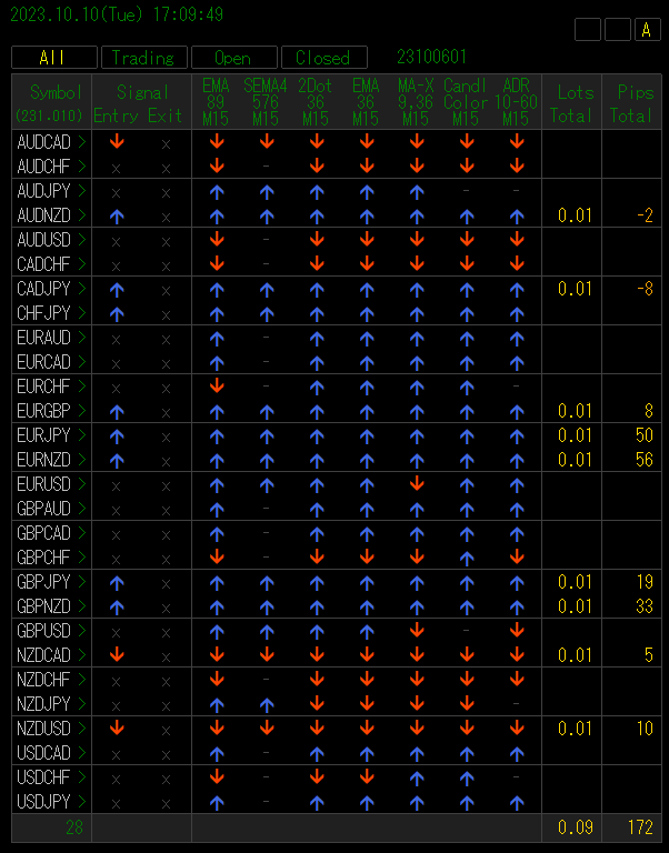 If the direction of the large dot and the 89 EMA do not match, no signal will be displayed.