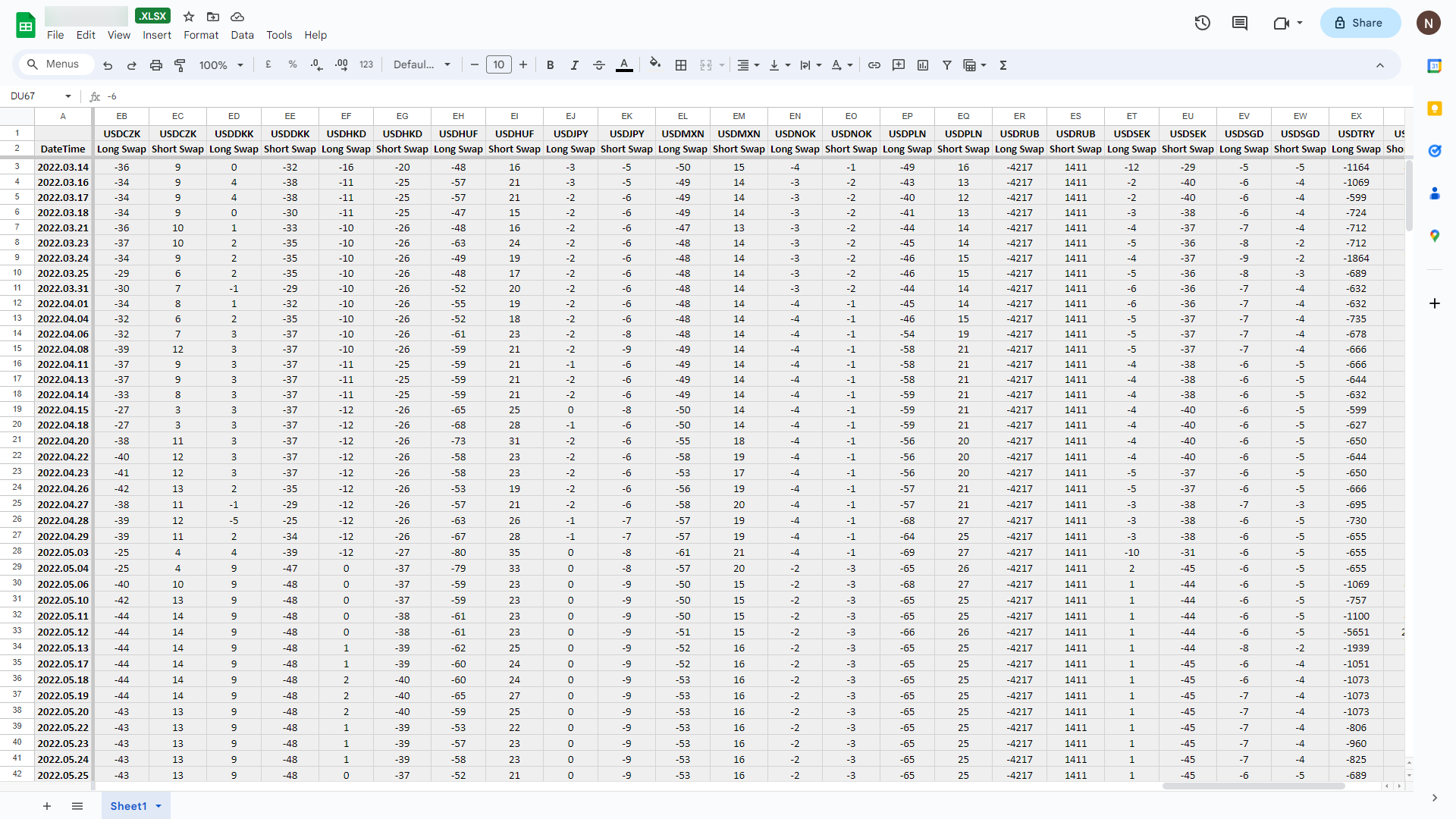 In order to facilitate the Swap research process, we developed an Excel based database which draws the latest Swaps of multiple brokers for each currency pair.