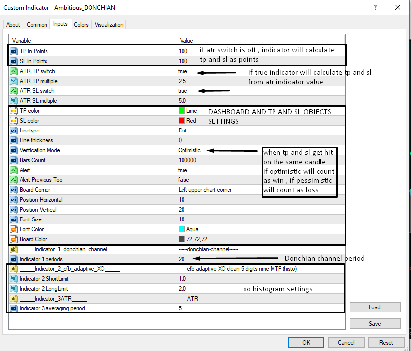hey , here is another one of my creations , its based on donchian channel and xo histogram , you need to have both of them in your library , they are inside the rar file along side a template file , the indicator is called Ambitious Donchian , it give tp and sl levels for every signal , it gives signal with alert on bar open , it has backtesting dashboard so you dont trade it blindly .