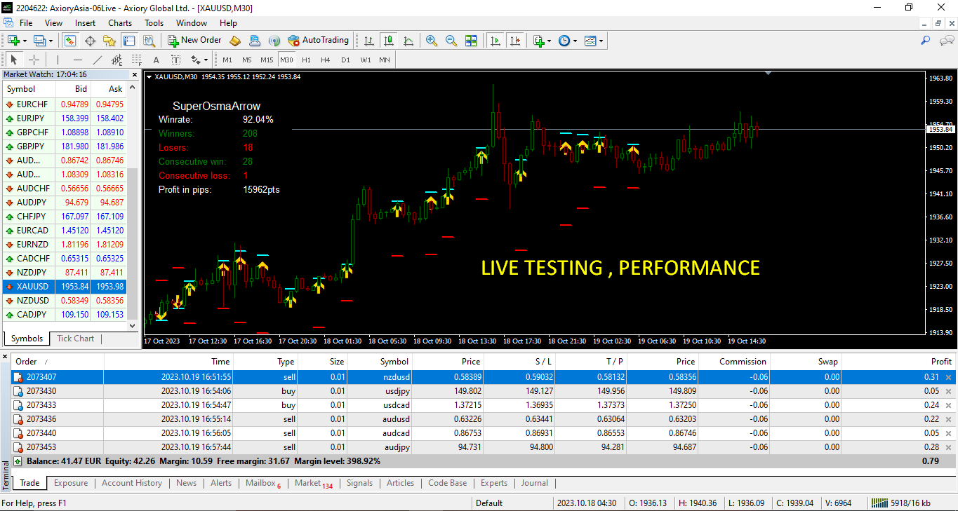 the indicator has dashboard that gives win/loss and other stats so you dont trade blindly and it gives signal on bar open (can be usefull for binary options)