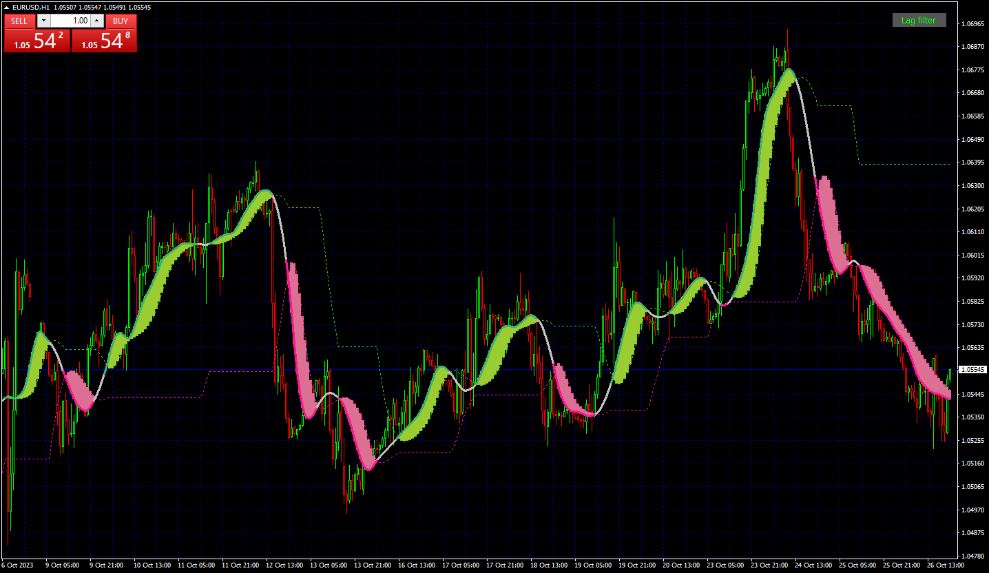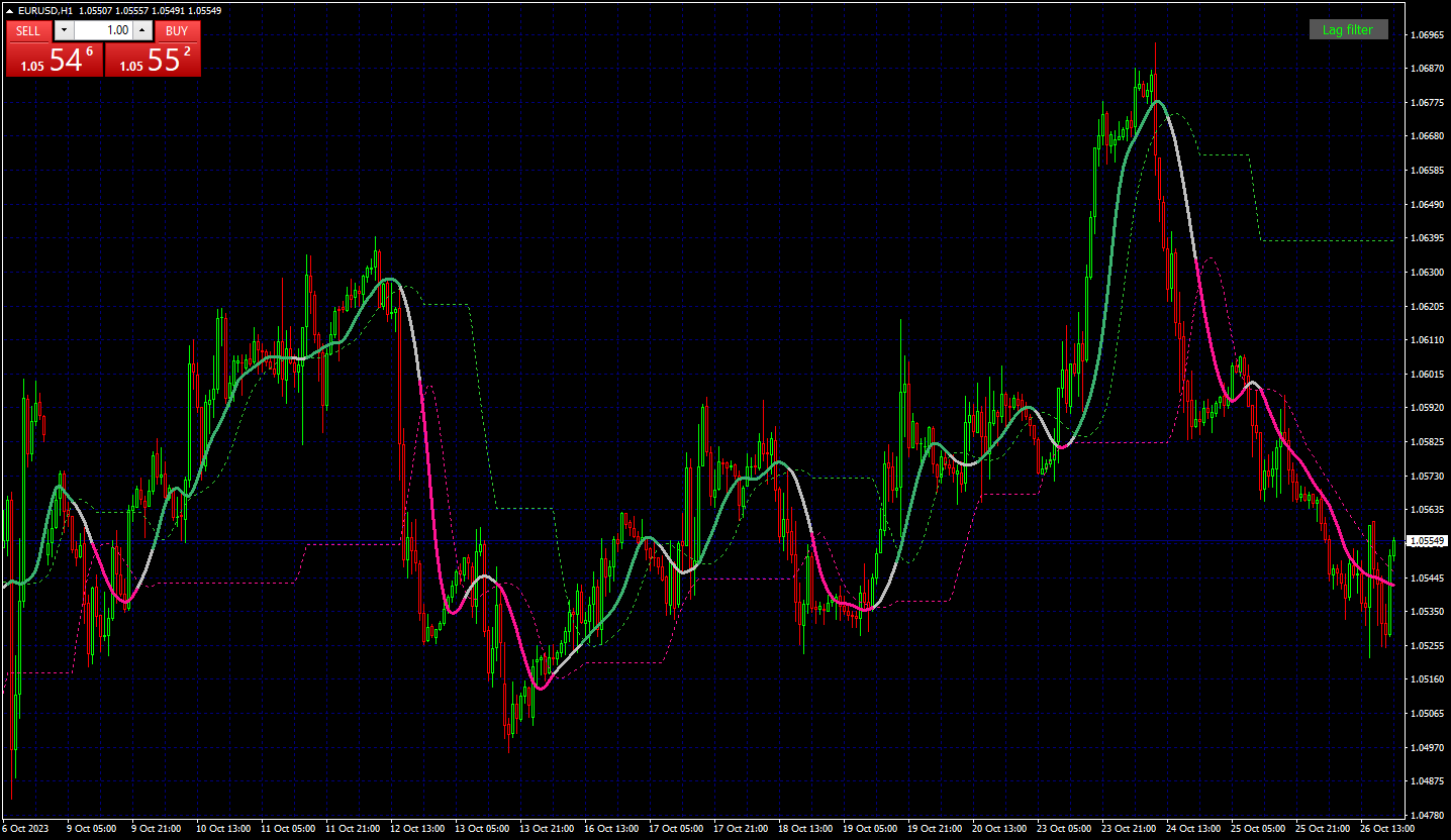 The original ATR adaptive Laguerre filter (originally published here : ATR adaptive Laguerre filter) uses slope/color changes for signals. Here we are changing that.