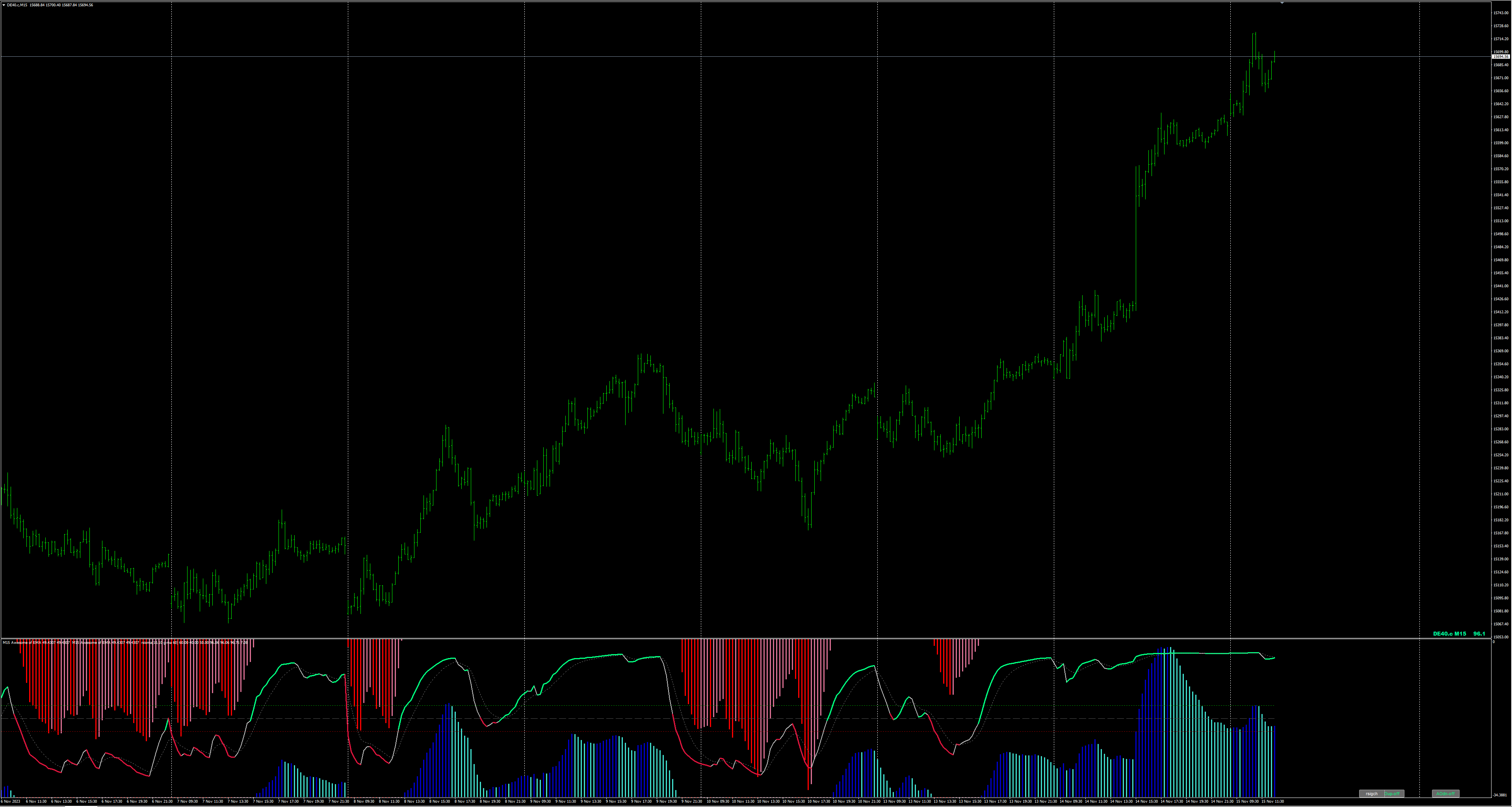 Here is the result with AO and RSIOMA G-MA. You should experiment with the settings. Maybe at the weekend.