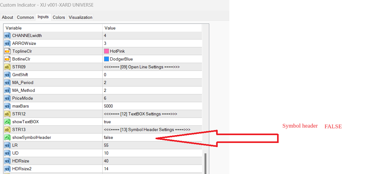 This text appears on chart when : STR13 : Symbol Header setings : is set to : False