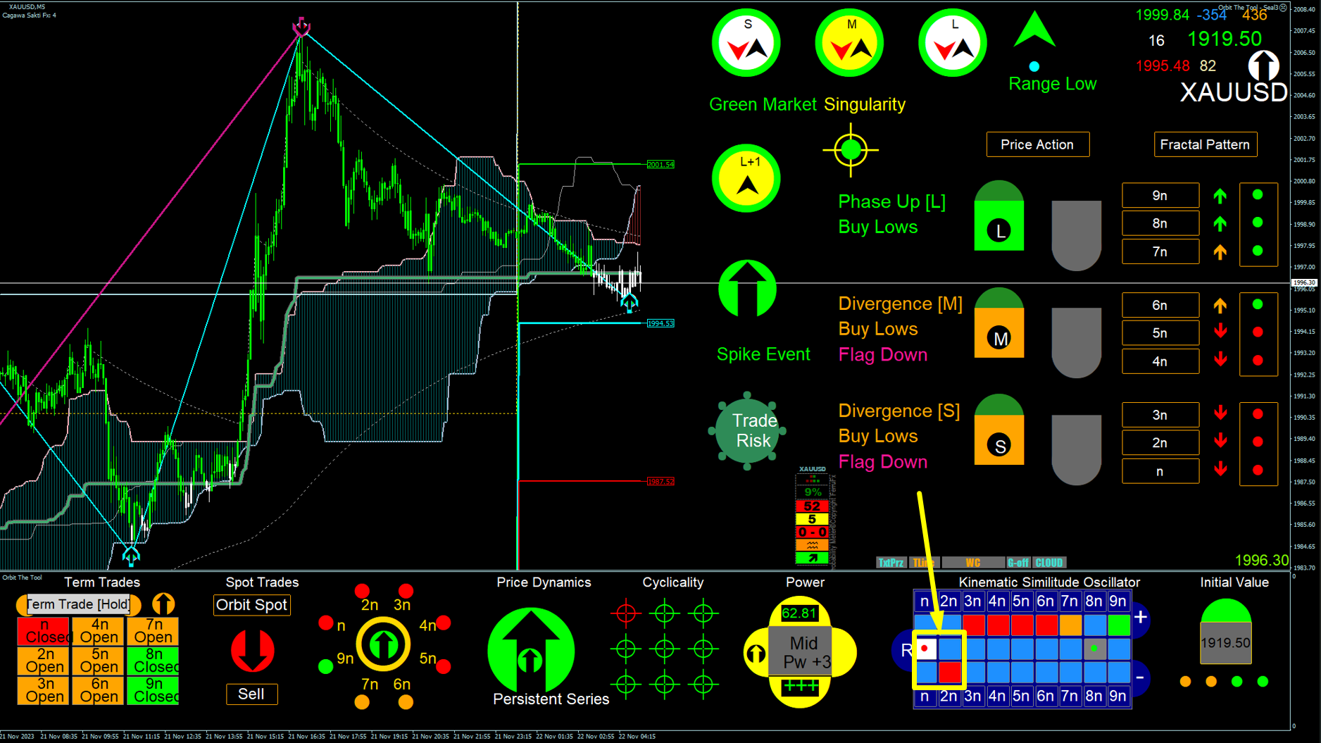 First, to log in using a command, you must wait for the pullback to complete. Pullbacks can be of different depths. It is very difficult to determine in advance the depth of the pullback. But there must be at least a full-fledged pullback in the near space. That is, the KSO oscillator must move at least n-2n partitions to the bottom line (for an upward movement). Only such situation can be considered minimally sufficient to reopen a position according to the appearance of a new command.Ikeyoung27 wrote: Wed Nov 22, 2023 3:18 pm So basically follow cmd1 CY=TT. Try to get in on the direction of that especially if everything else is lining up correct ?