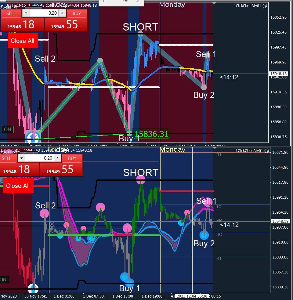 I accept advice, as a bias on the Nasdaq 15 minutes would you evaluate more the sell first graph, or buy second graph?