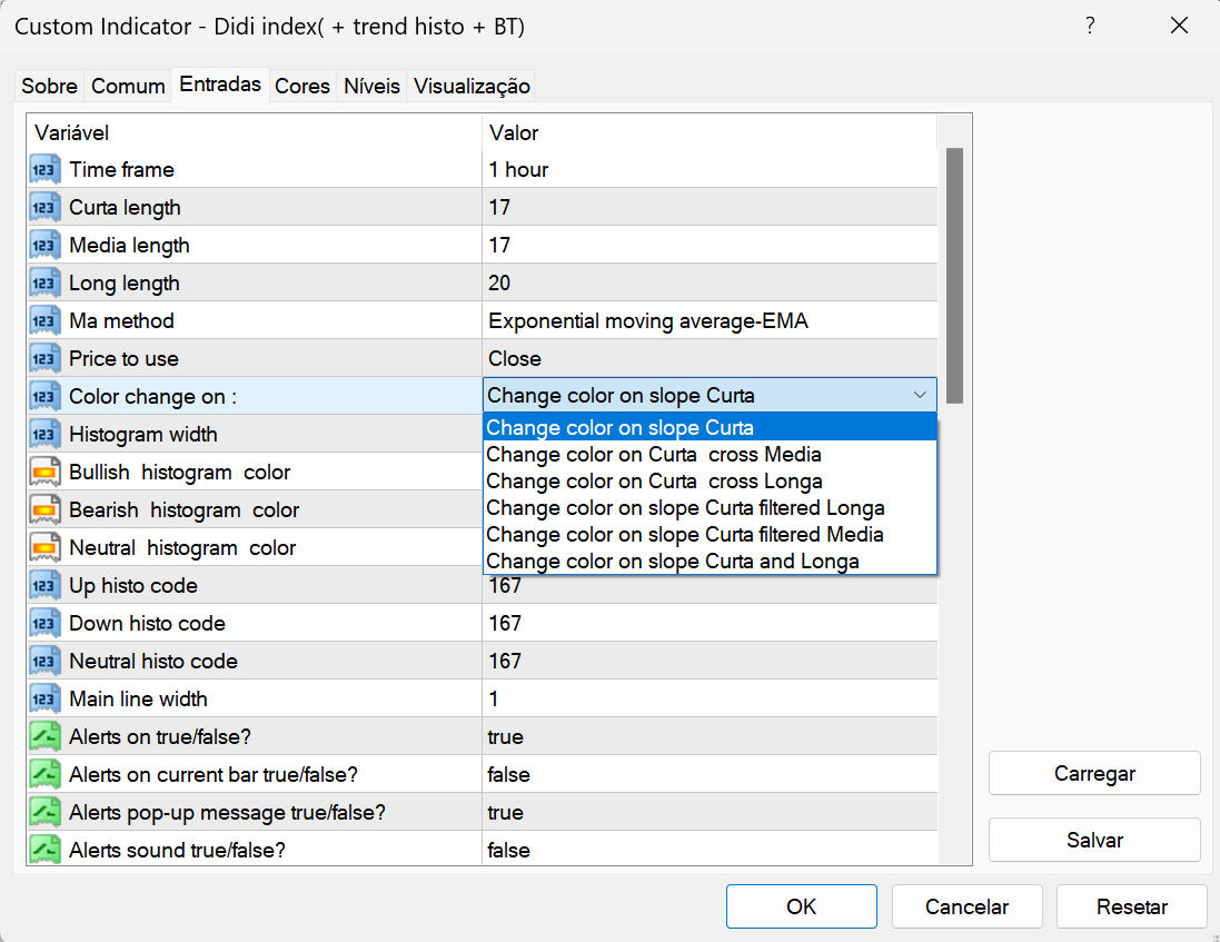 Note: remembering that in the example below, the Didi Index, when it crosses upwards on the zero line, is a bearish signal and vice versa.