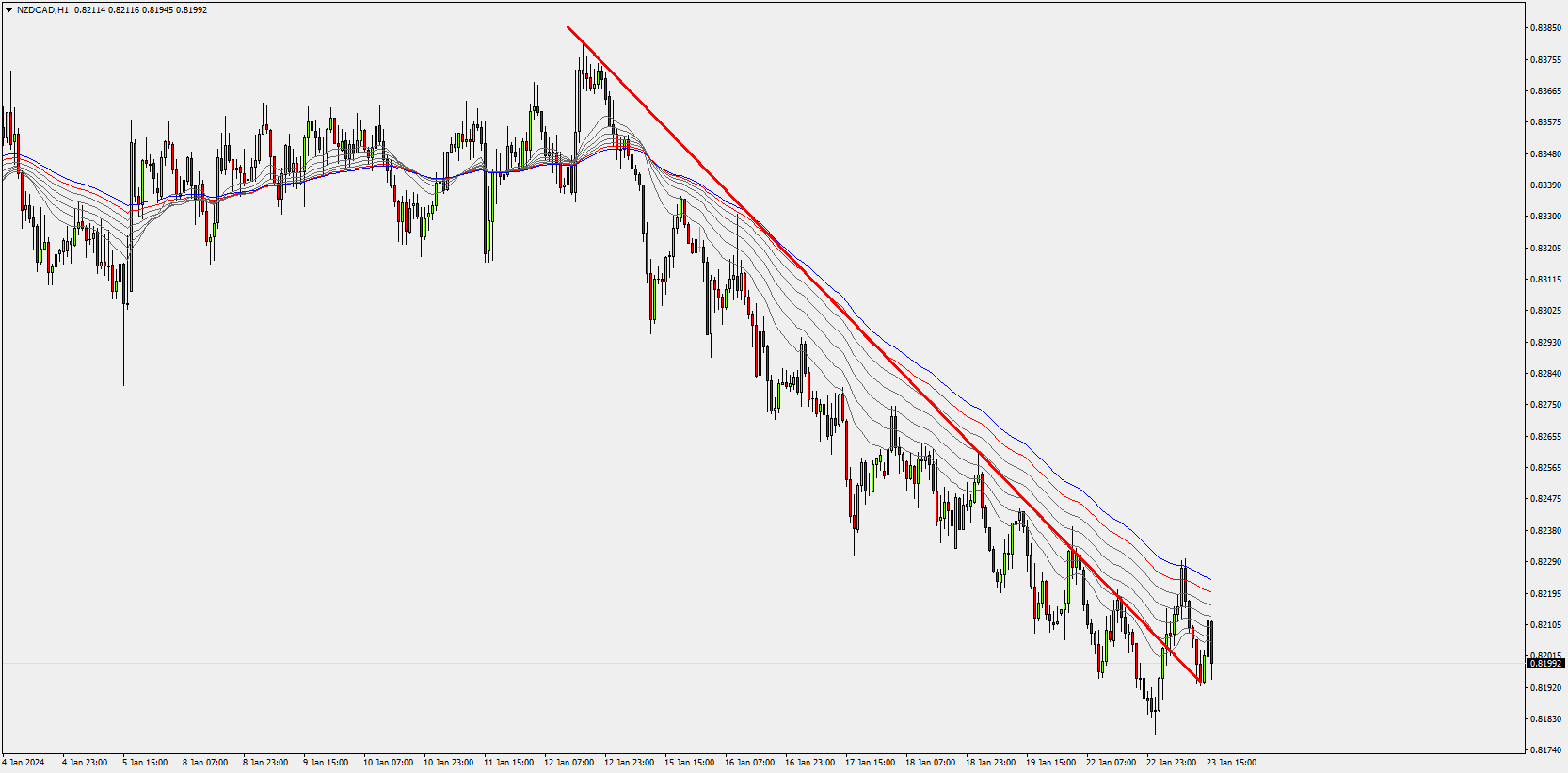 this nzdcad daily chart now on 1H. the MA's will help to draw trendline / market structure