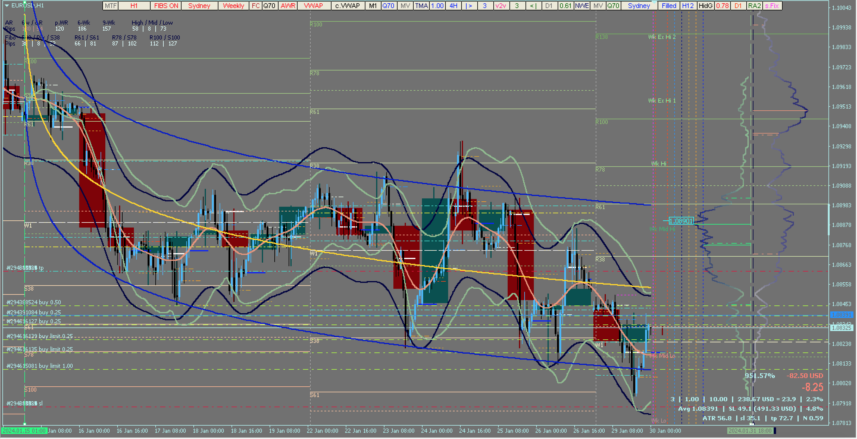 EUR/USD : H1 TF : Custom Candle H12 : TMA centered Bands : Nadaraya-Watson Estimator : updated/pending positions...
