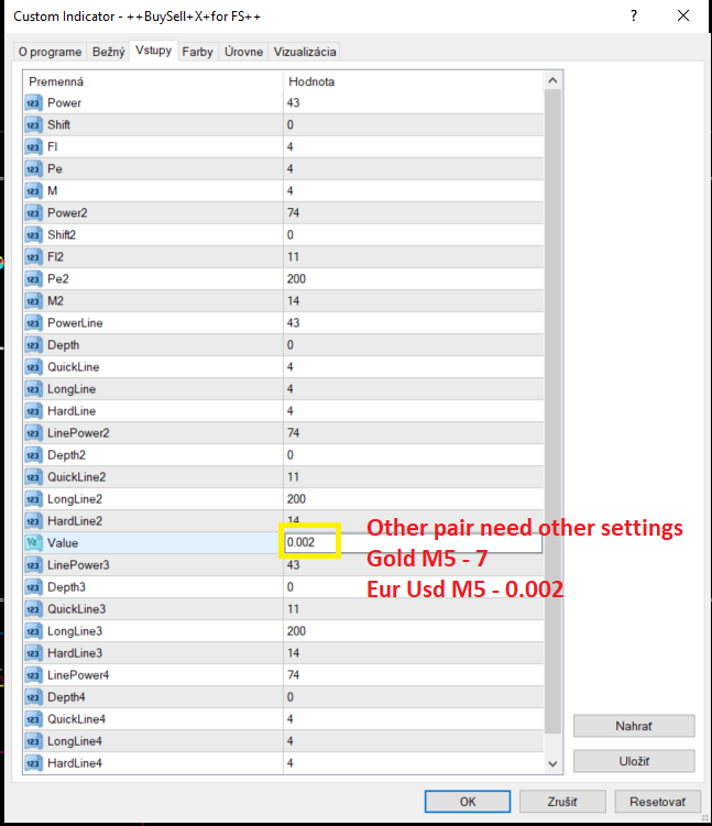 !For the picture Setting!!yellow line is not set!!other pairs, for example (eur usd M5 need set 0.002) this needs to be changed-----(Gold M5 need 7) etc.....here is- 2x extreme set....