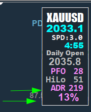 PFO Price from Open now is minus (pink colour) 28 (2035.8 minus 2033.1 which is 27 - allow for rounding or delay in calculation)