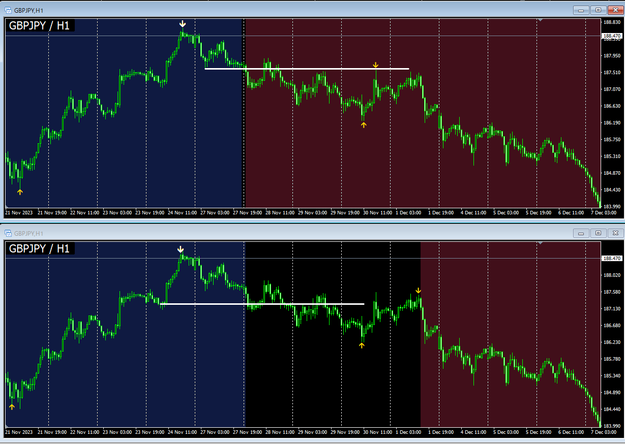 Upper side is "FNC_N_Break_bySemafor_wGuide" (The lower highs and lower lows pattern, and opposite)