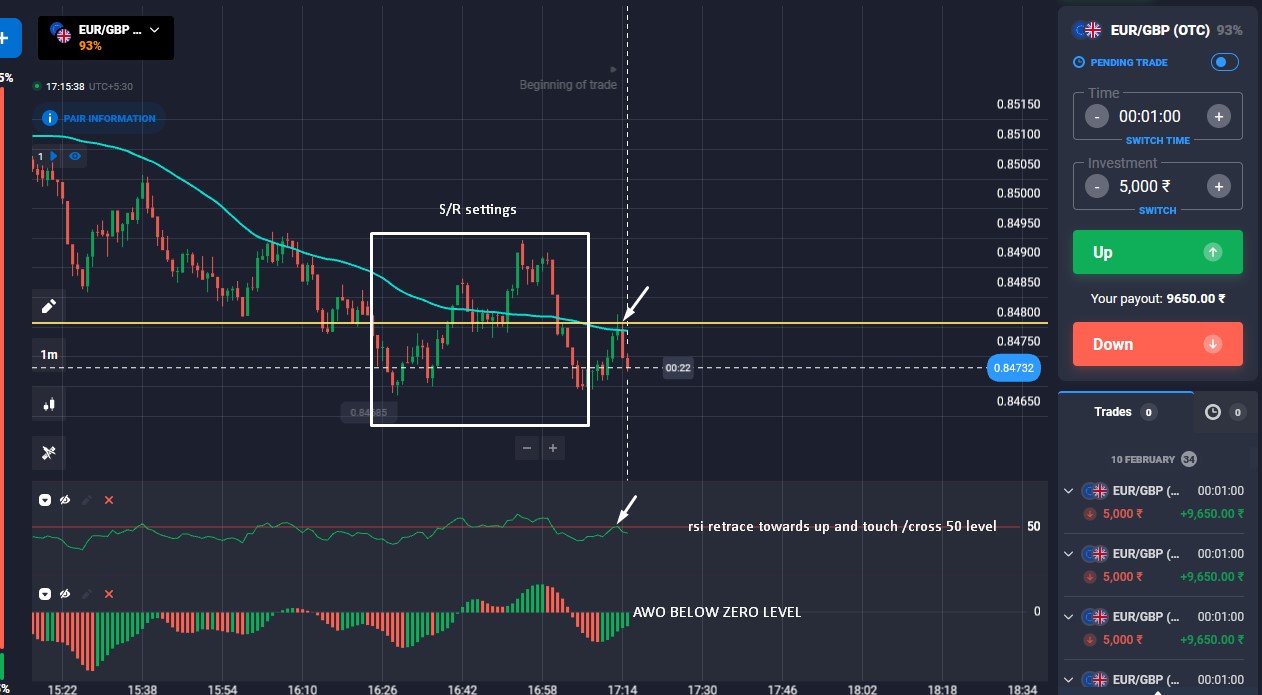 best 1min expiry trade setting using S/R and rsi