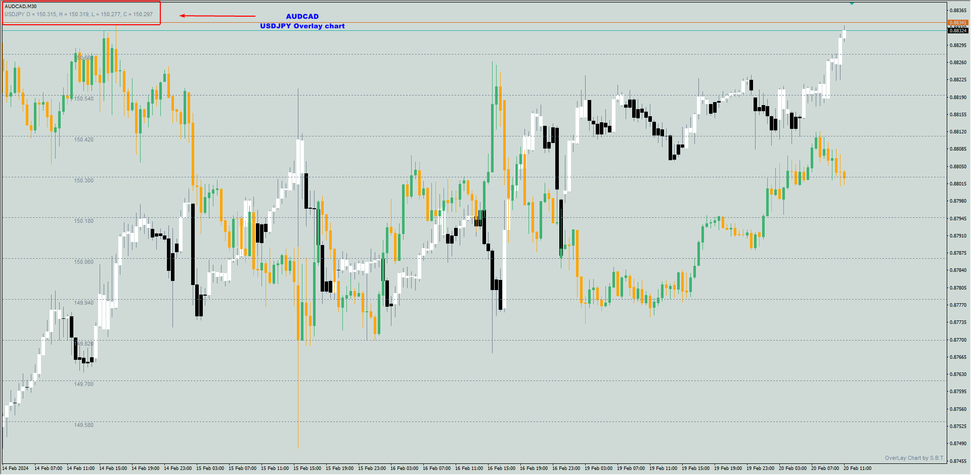 For example if i use a eurusd chart but want to see gbpusd and audcad prices on the chart.
