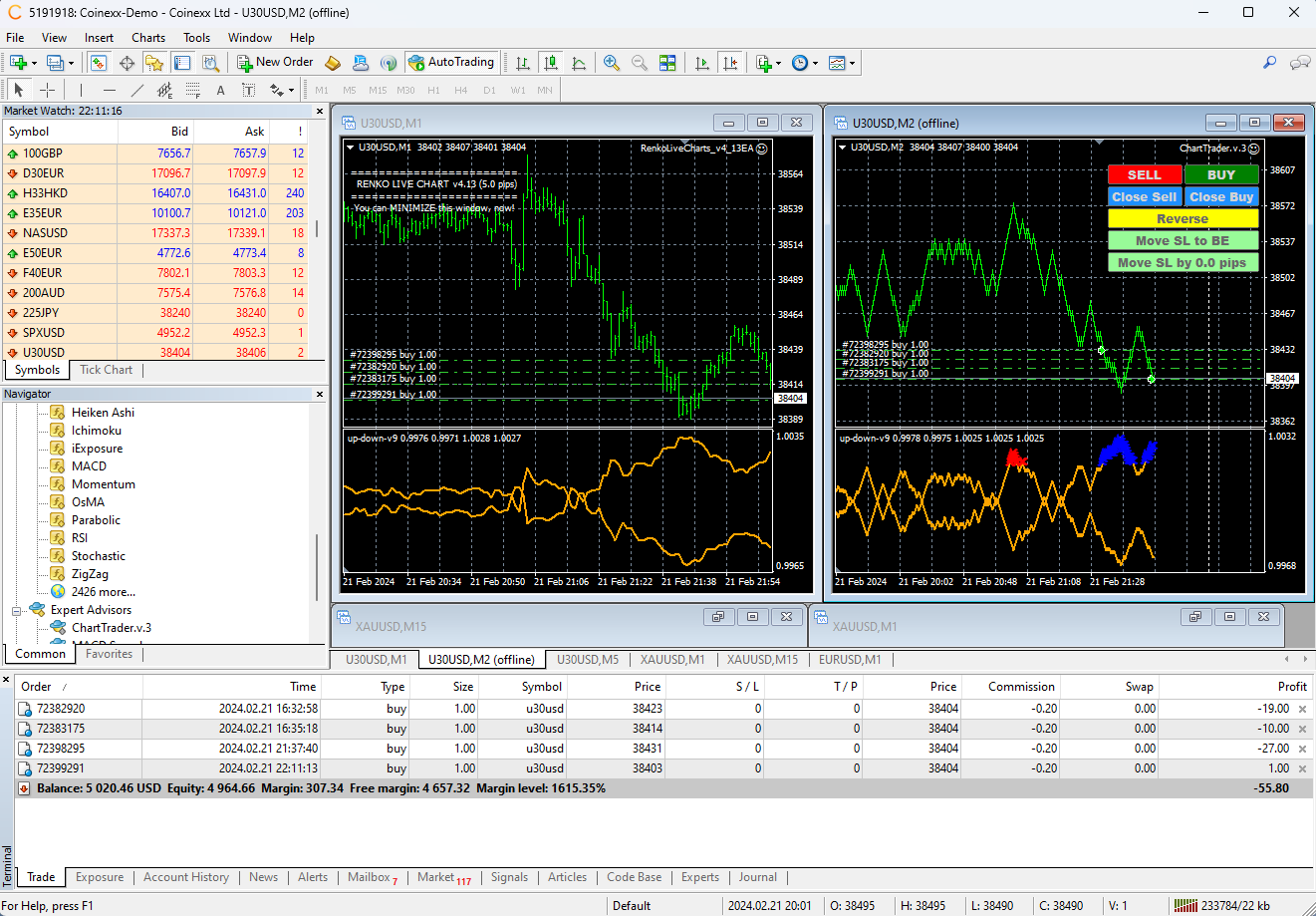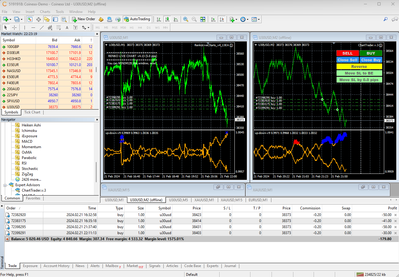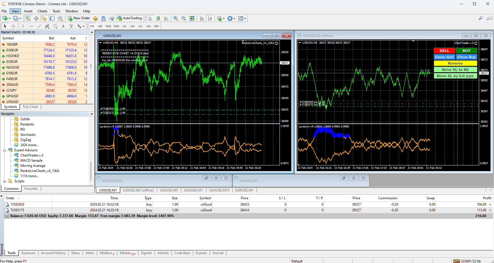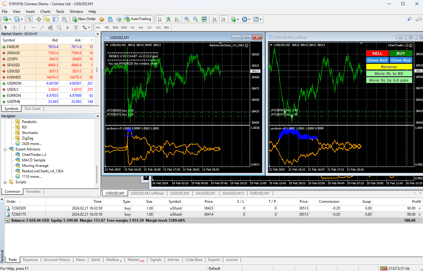 Scalp Trading Up Down V9 On Candlestick + Renko Charts On A Demo Account