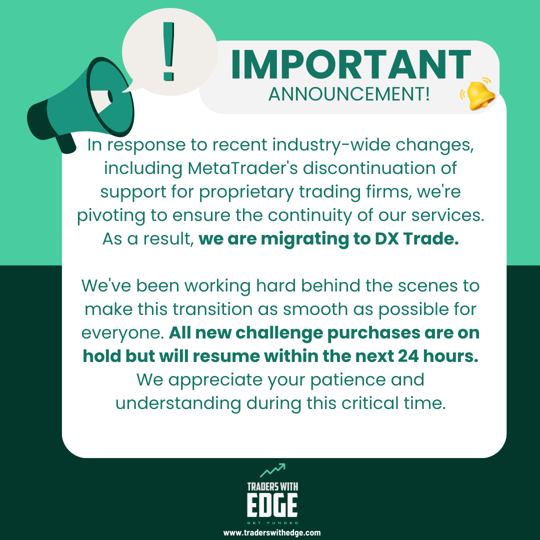 In response to recent industry-wide changes, including MetaTrader's discontinuation of support for proprietary trading firms, we're pivoting to ensure the continuity of our services. As a result, we are migrating to DX Trade.