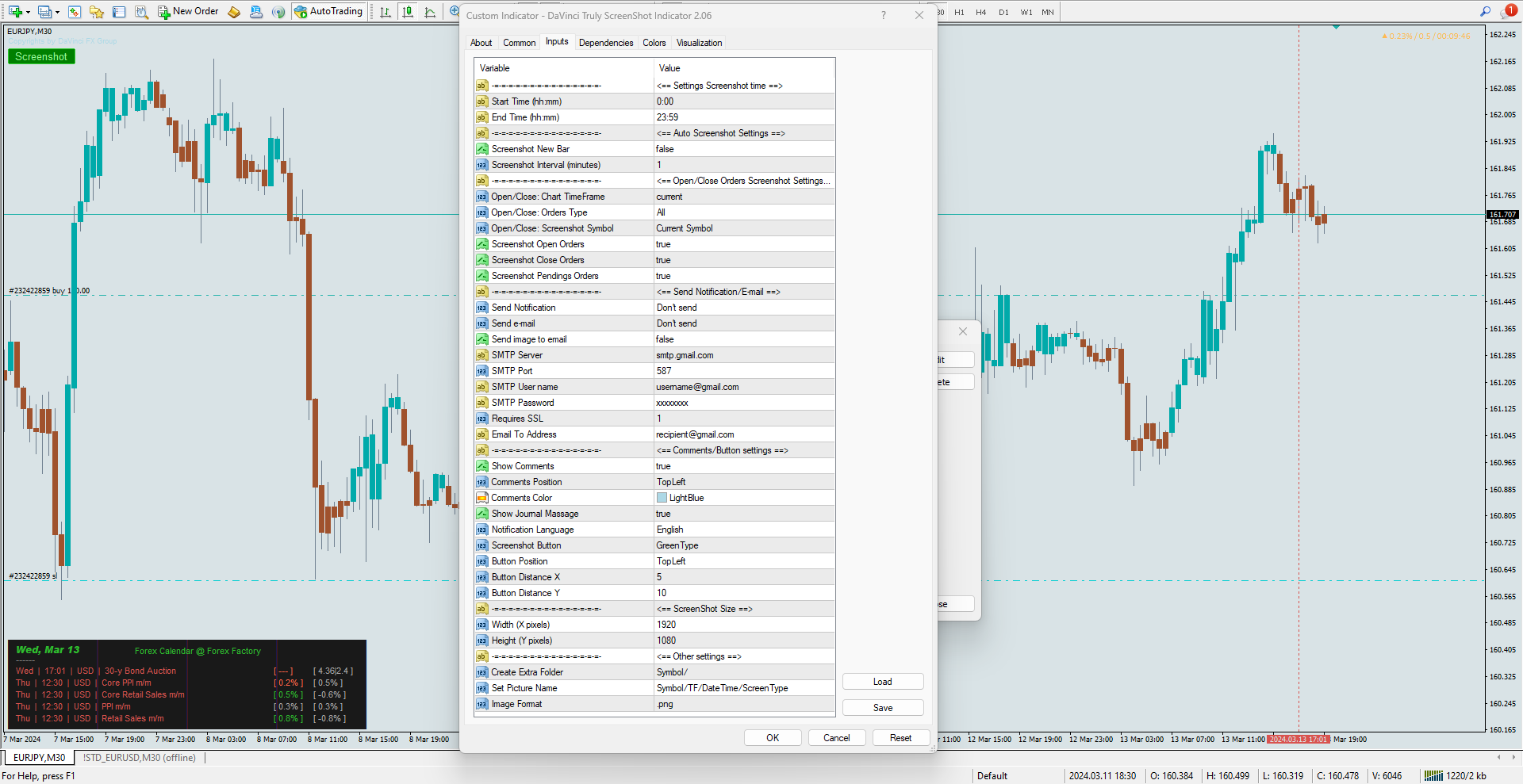 Screenshot New Bar The indicator will take screenshots at the opening of each new bar on the current timeframe at true.