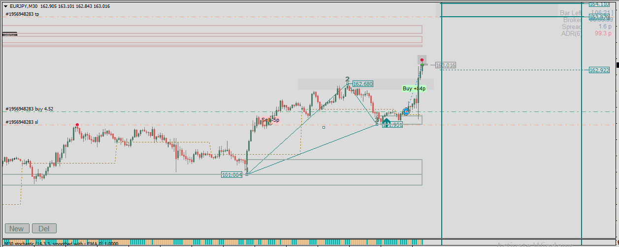 This is EJ on my demo account. I copy trades from my demo to my small account. I took this trade from H1 Supply zone. I saw that it aligned with the Gann's triangle entry. I'll patiently wait for it to reach the profit target zone.