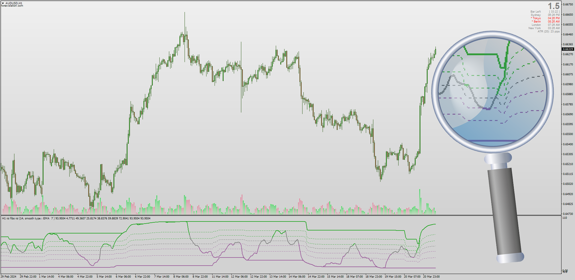 Kvak's focus for this week has been indicators with "Fibonacci levels" including this new RSI which comes with a built-in Fibonacci Channel, making it ideal for forecasting trend reversals & continuation areas. Please try it out with your systems, here: post1295537237.html#p1295537237