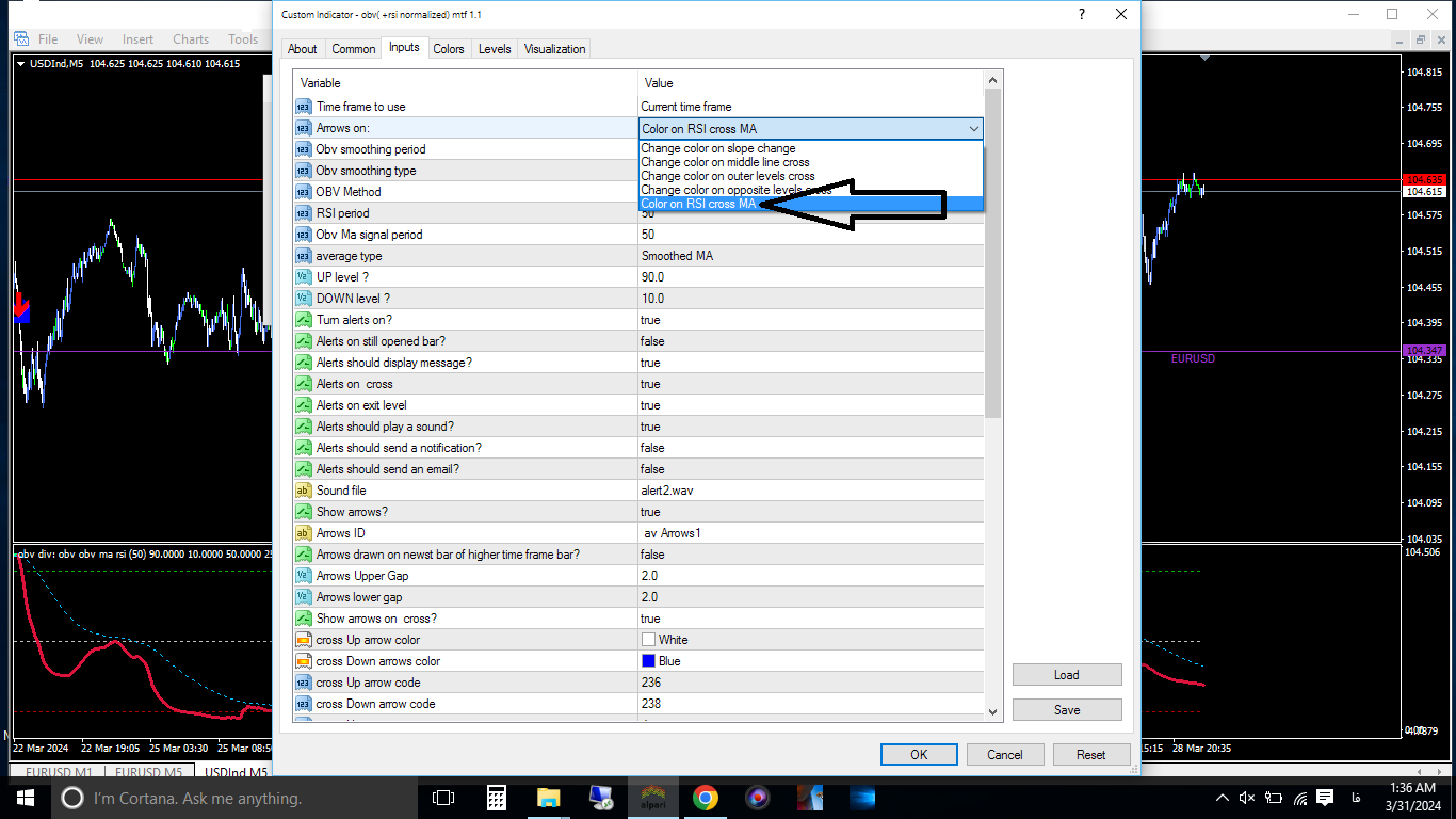 When I put the ARROW display on the cross RSI mode or other modes (except the outer levels mode) in the part I showed with the arrow, the ARROW is not displayed when entering the channel.