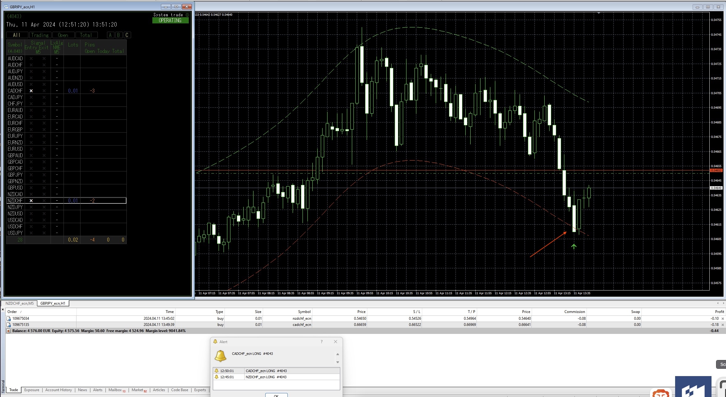 Immediately after starting "The FNC Greedy System", the "LuxAlgo - Nadaraya-Watson Envelope.ex4" indicator outputs an error.