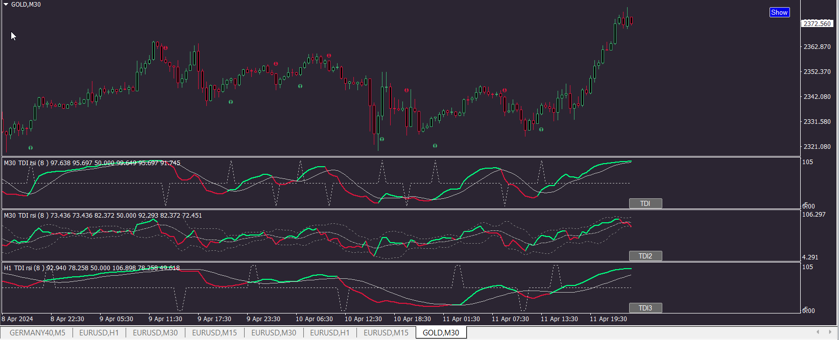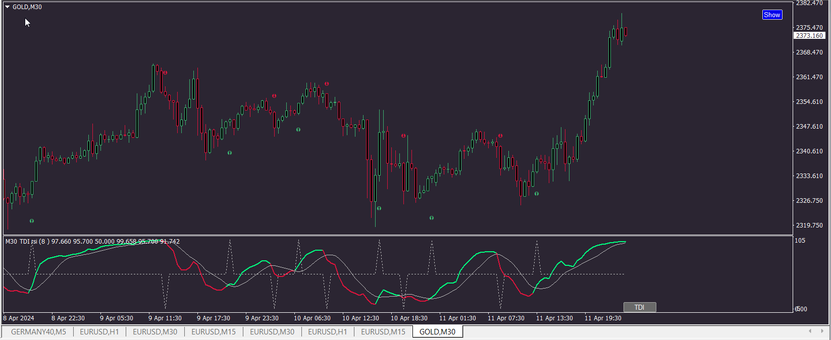 - The original trigger for a "Fozzy" signal was when the 8 RSI crosses the 8 MA and this TDI is based off the original "Fozzy" signal.