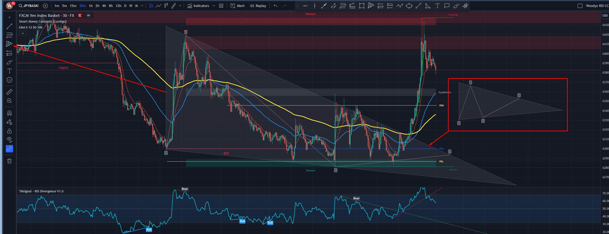 Can anyone help me out with a 4-point triangle plotter, same as the standard one used in trading view., with draw & delete buttons onscreen would be fantastic.
