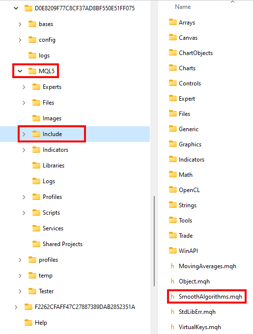 And put "SmoothAlgorithms.mqh" in the MQL5 > Include folder