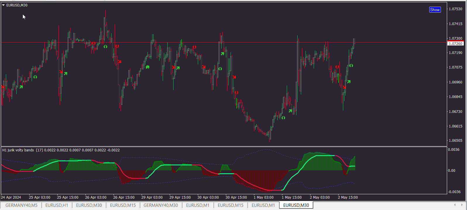 Jurik Volty Bands with multiple Arrows & Alert optionsPAWPUSS wrote: Thu May 02, 2024 8:29 pm Further to previous post JVB request , I notice that if I place two JVB indicators on the same chart, current TF and Higher TF , that they seem to interfere with each other. I can only select one of the indicators with the existing 'dots' , if I try to select both indicators with dots/alerts it overrides the previous one. ie whichever has settings made last , overrides the other??? Any way to resolve this issue?? Thanks again.