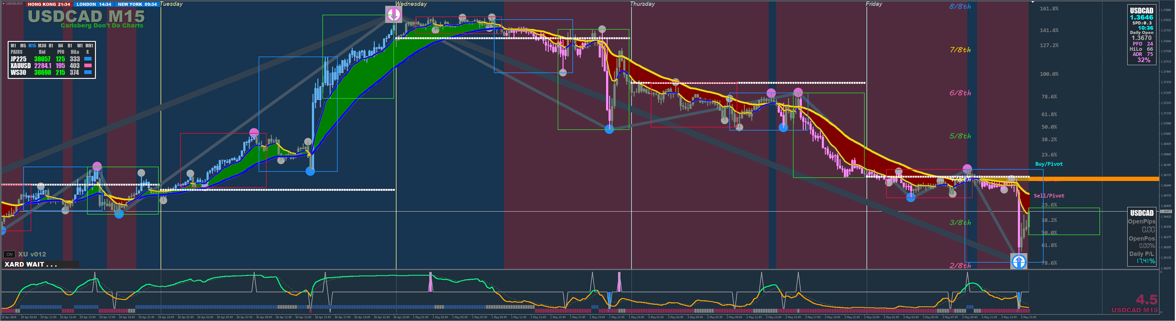 XARD: Your welcome, now left mouse button (click + hold) the small inverted white triangle (top right of screen) and drag it to the left slightly and the ADR % numbers should fully appear on your chart. Remember to save your template for future use. Here is XU v012 for comparison