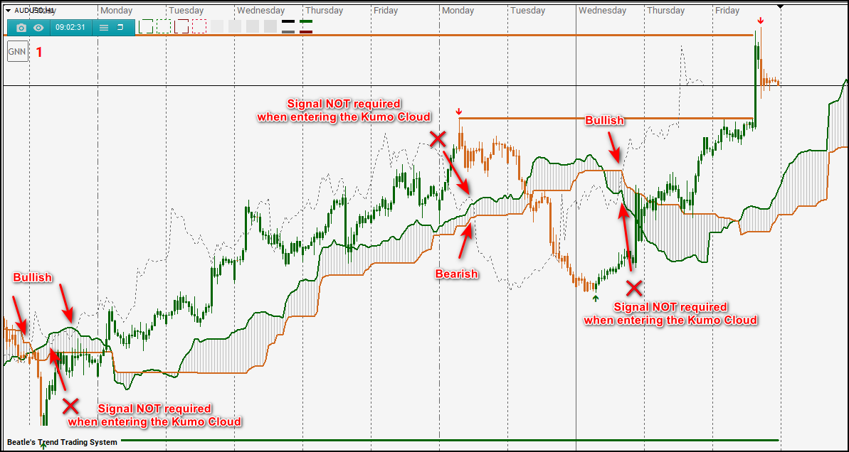 Crossing ABOVE when bullish and crossing BELOW when bearish