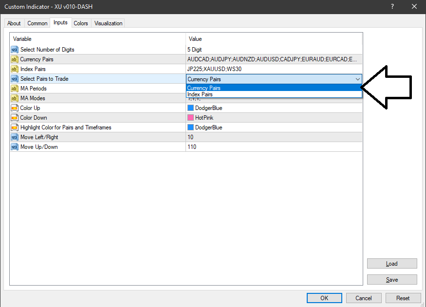 The indicator is on the zip post1295538535.html#p1295538535 on latest version and is called XU v010-DASH, and you can choose to pairs you want or indices, i choose the option has been selected.adrian009 wrote: Wed May 08, 2024 4:32 am Curioso pls what is the indicator to see all pairs at the left?