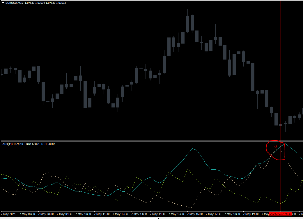 Likewise, when the "+DI" crosses the ADX from bottom to top, a buy arrow should appear, and when it crosses from top to bottom, a sell arrow should appear.