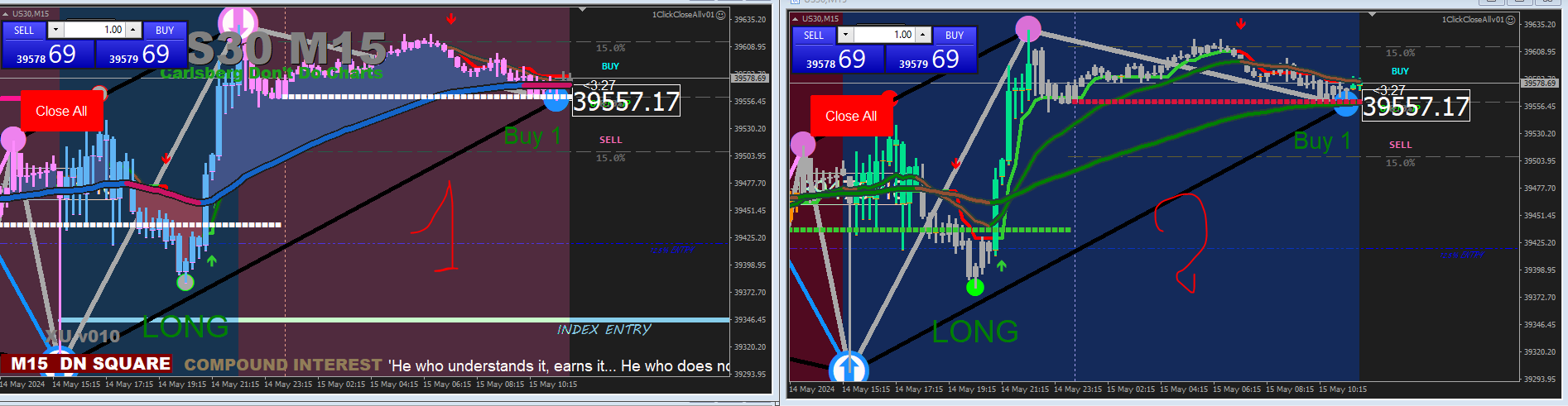 how to deal with this situation in graph 1 I have the arrow for sell positions, in graph 2 I have a continuation buy, how do you behave?