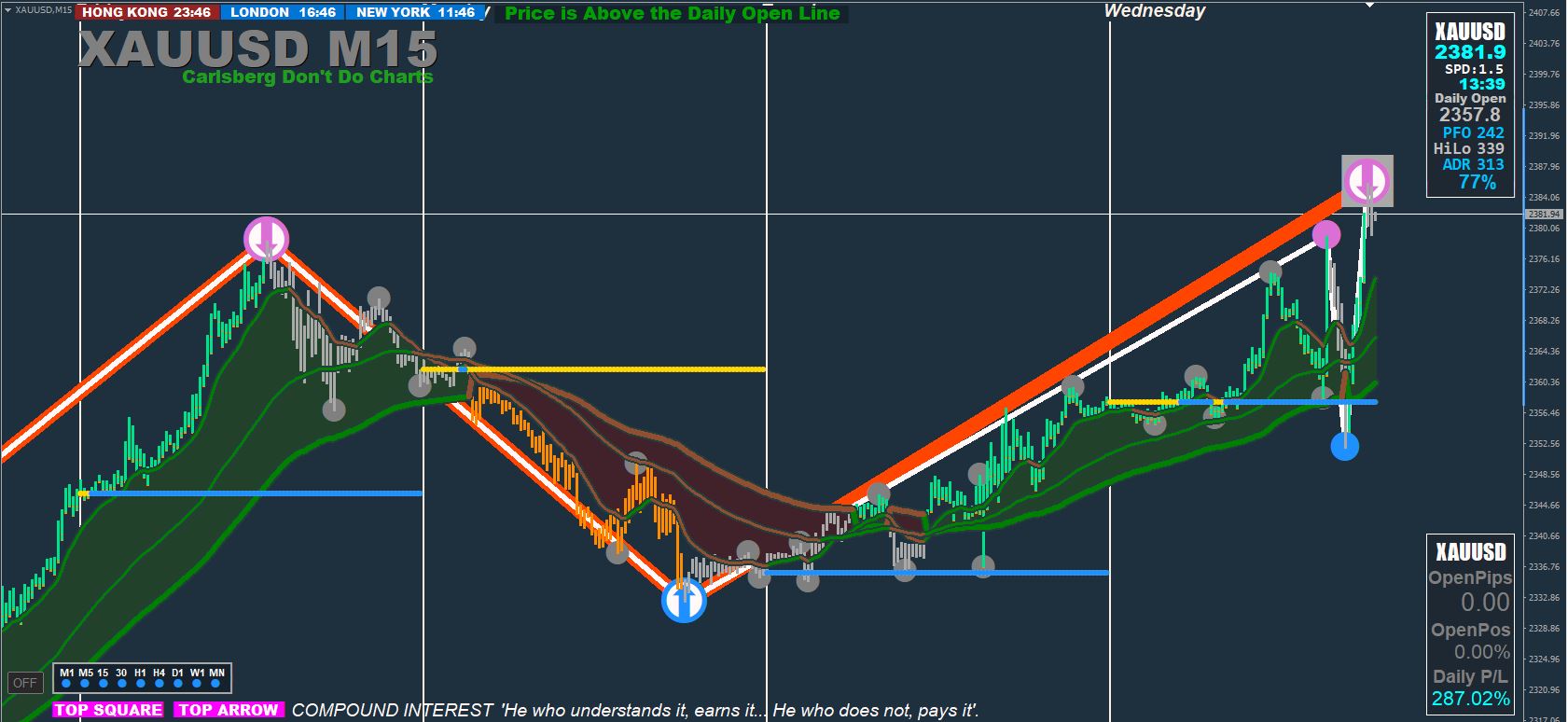 4. Finally, I would close out and book my Pip$ upon reaching the Arrow Dot indicator (except, I bailed earlier again as I blew past my daily % target, but hopefully, you get the picture).