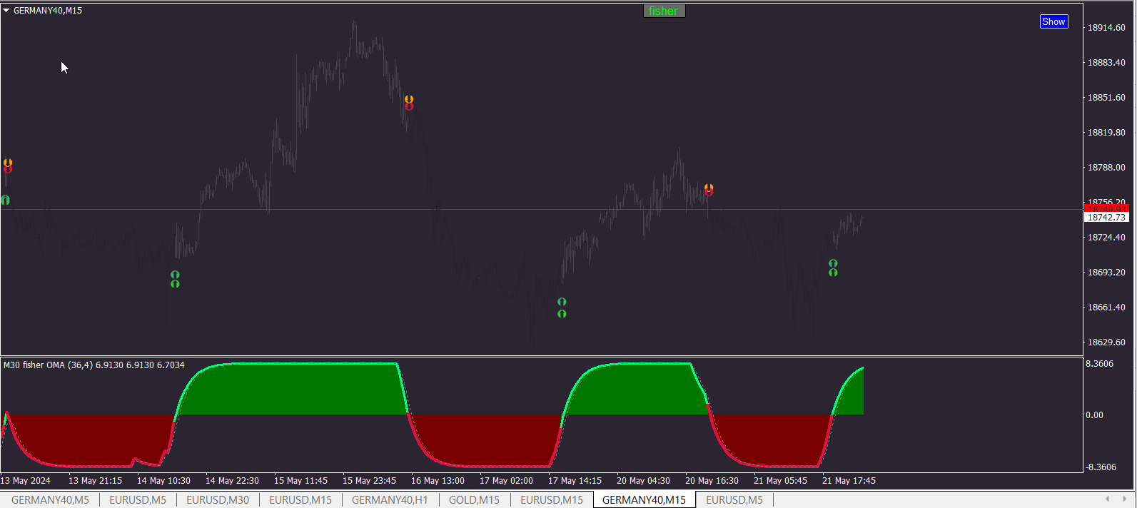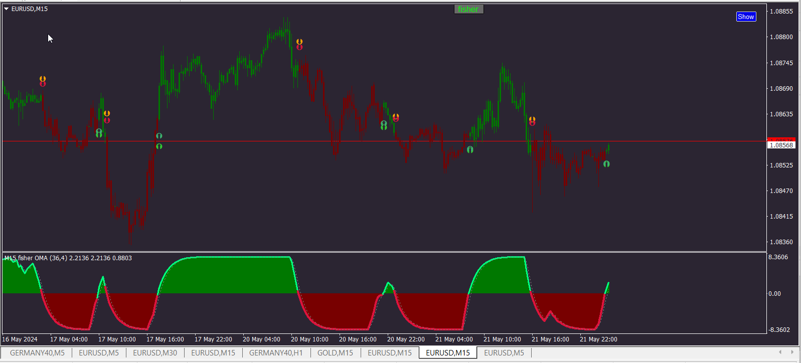 This indicator : fisher (+mod) : is really useful and good output : on zero level cross : in H1 Time Frame.