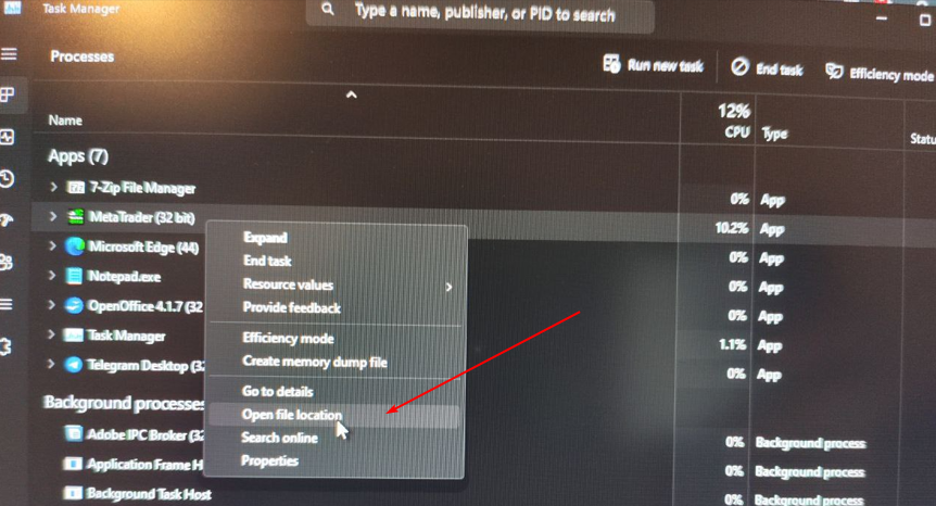 Open task manager, select open file location as on the photo, and replace terminal.exe with the one from this zip archive.