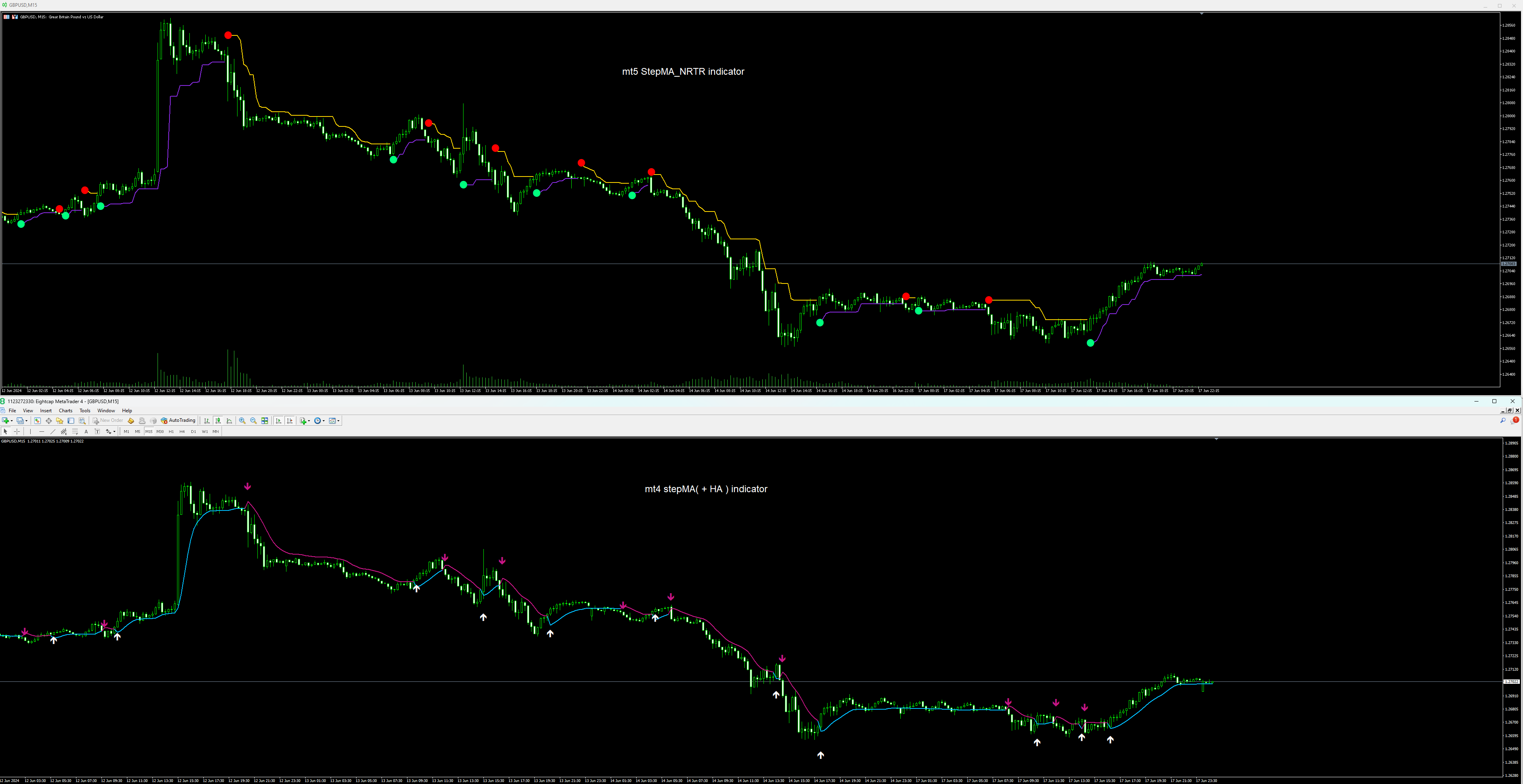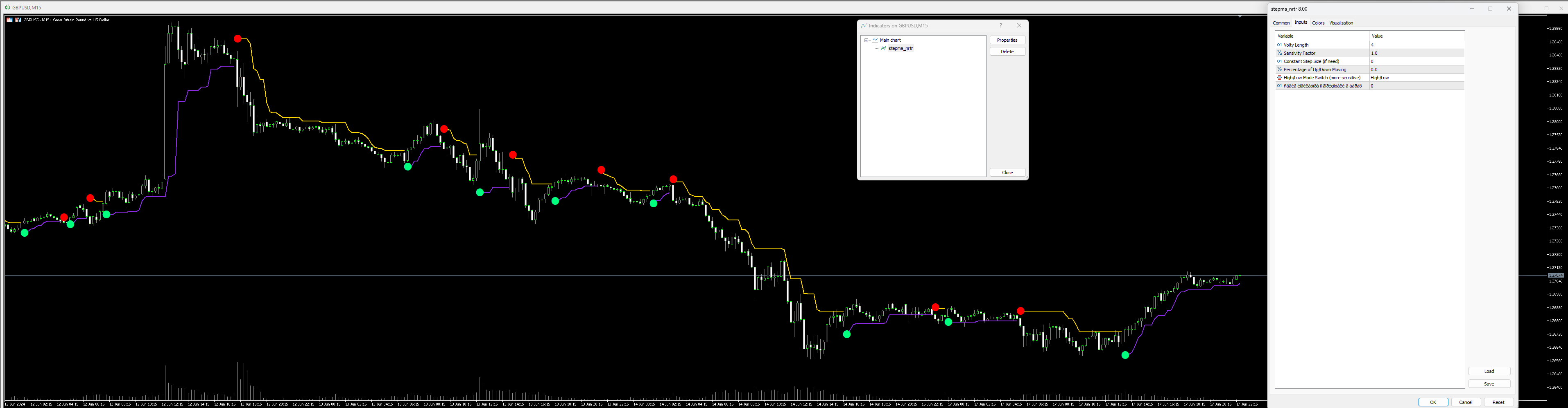 I found another stepMA for mt5. It is close, but I haven't got it to match precisely. The Sensitivity Factor setting seems to have infinite decimal places, so it could be there and I haven't found it yet. I have done no trading with it, just looked to match the visual outputs.