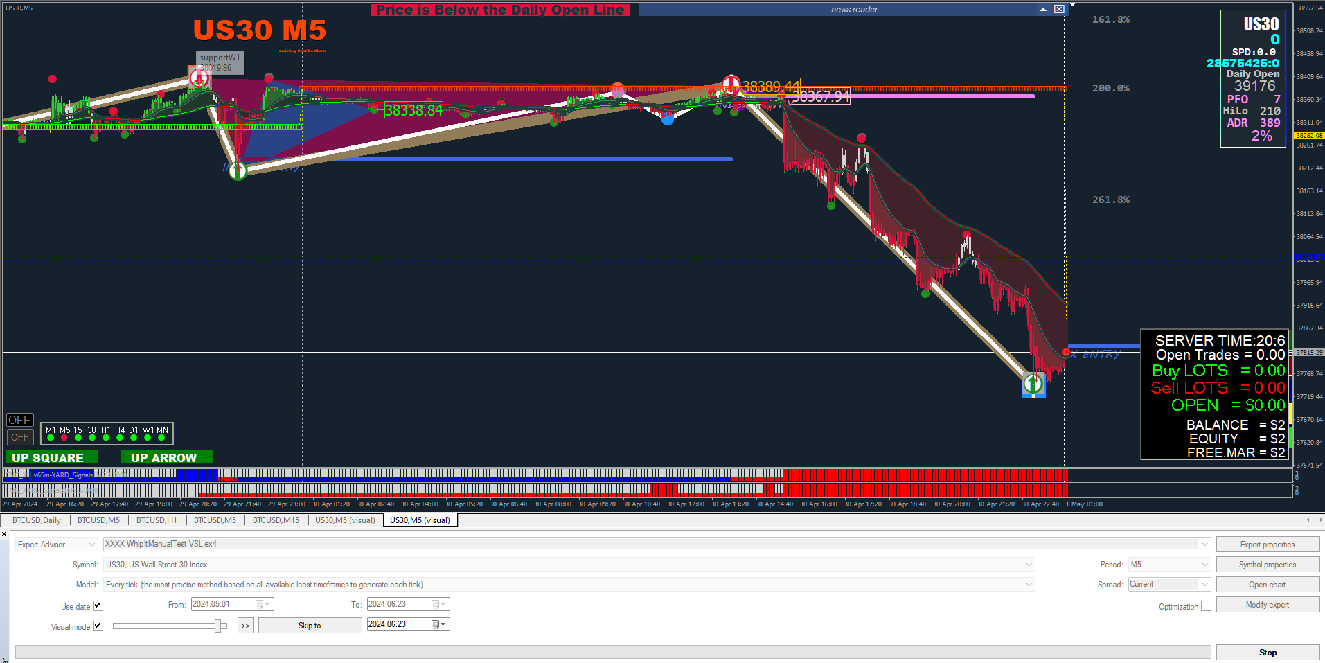 After this, press ctrl+r (Open and close strategy tester) and select Expert Advisor, select XXXX WhipItManualTest, select the Symbol, Period, Data range, Select the model and enable visual mode and them click on Start button.
