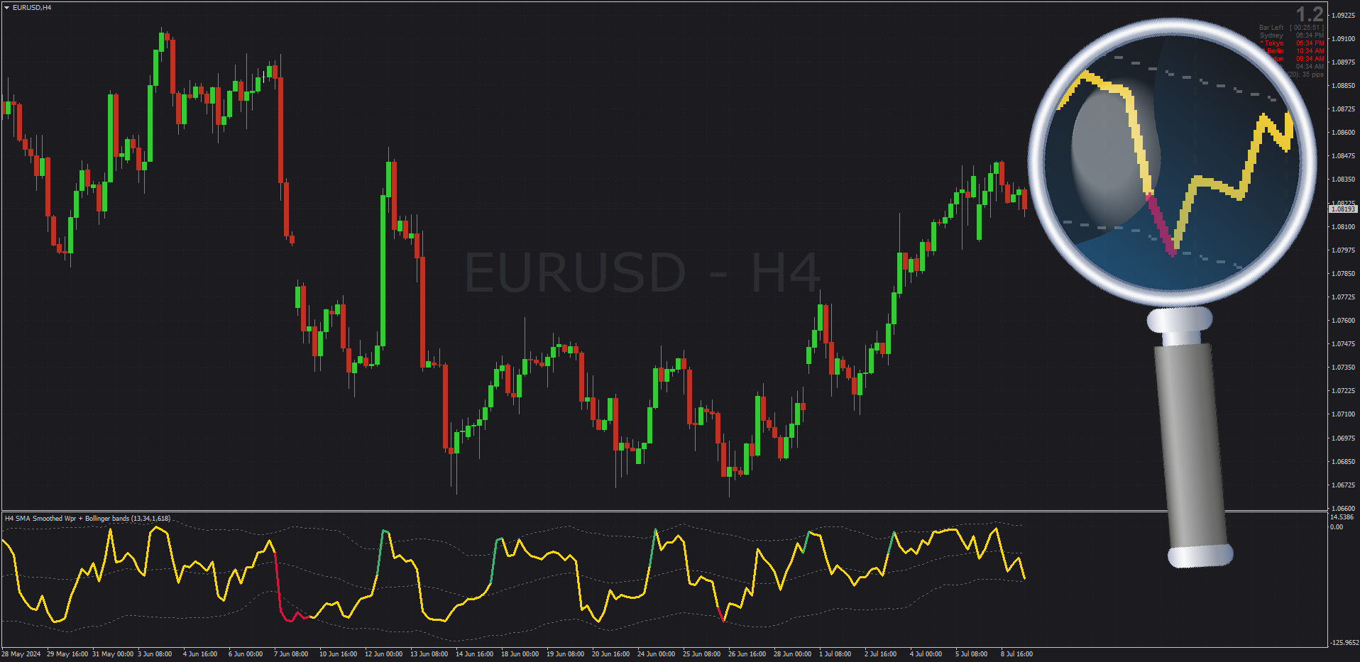 This is a fully-equipped, non-repainting Williams %R (WPR) with Bollinger Bands & Regularized MA's. A joint idea by Rodrigo & Mrtools, this single WPR can be used for Counter-trend, Scalping or even as a TDI. Be sure to try it & our template, here: post1295545777.html#p1295545777