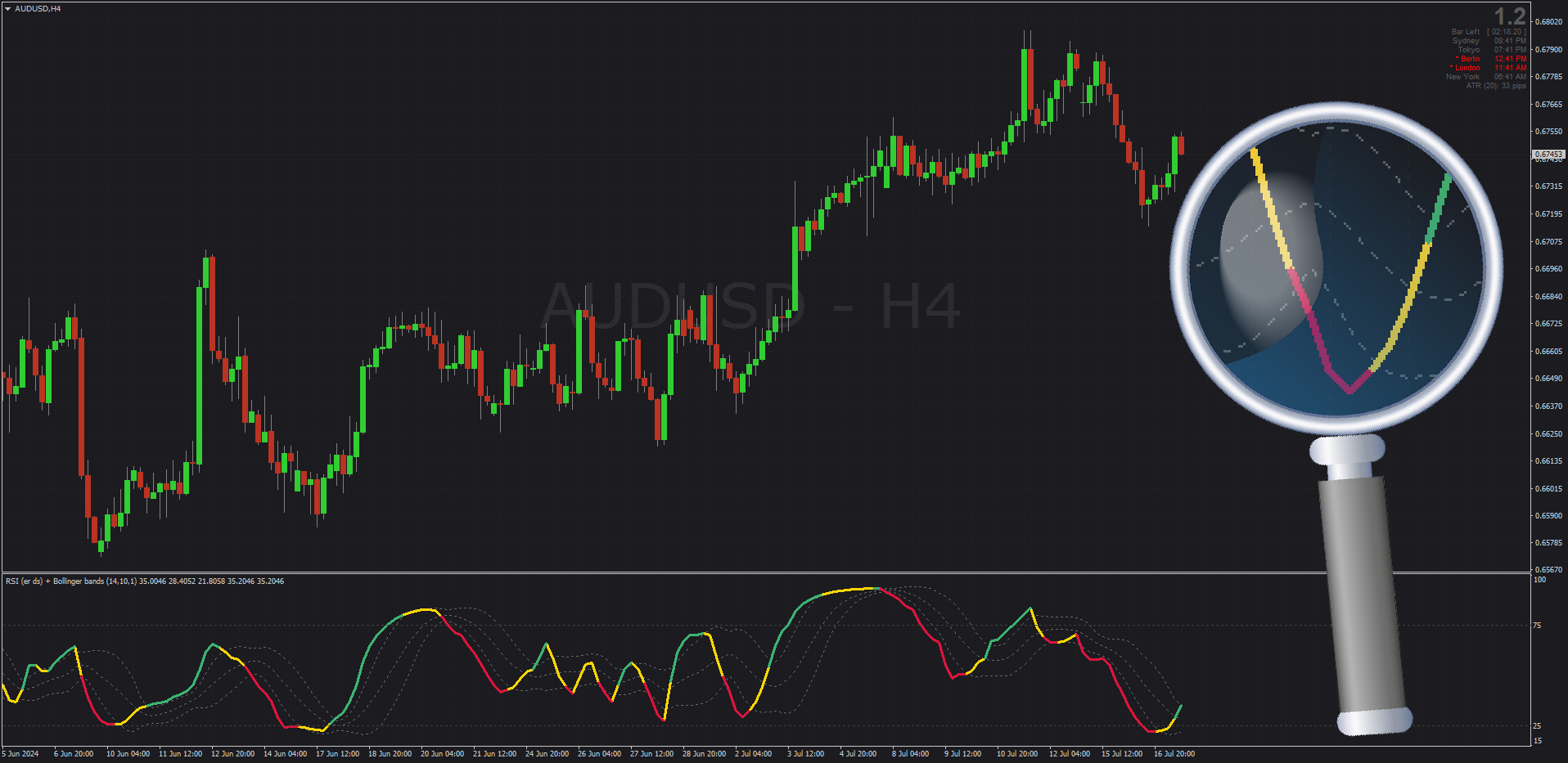 This is Mrtools & Mladen's RSI ER (Efficiency Ratio) using Wilder's Double Smoothed EMA for calculation. Encased in Bollinger Bands, it provides a smoother alternative over the standard TDI indicator when using a 13-period RSI. Please try it out, here: post1295546340.html#p1295546340