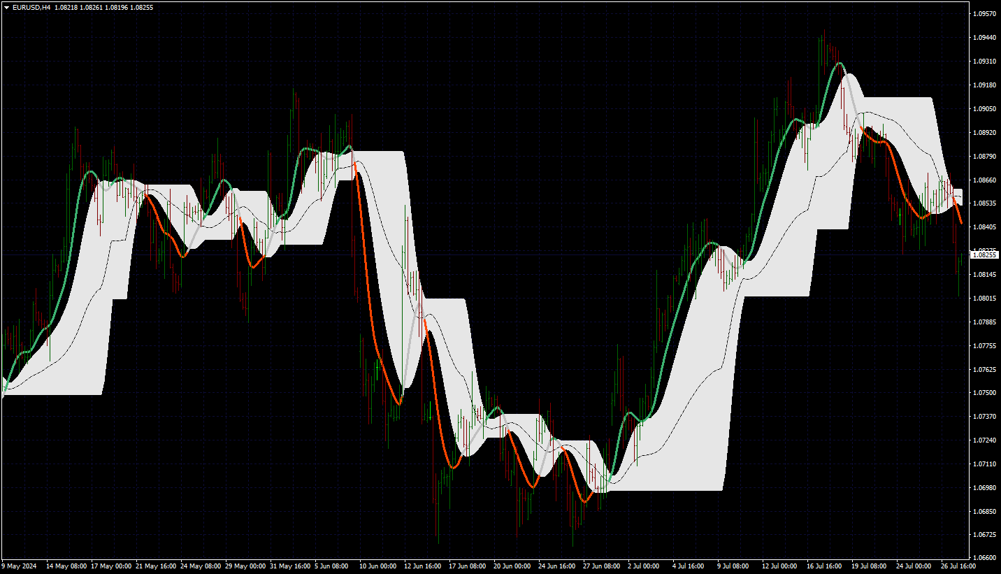 It is a sort of 3-in-1 indicator (since it is displaying the above described "levels"). It is also using self adjusting levels in order to identify trends. Instead of using slope of the calculated value, crosses of levels are used as trend direction, and that way they are filtering out the less significant slope changes that could lead to false signals.