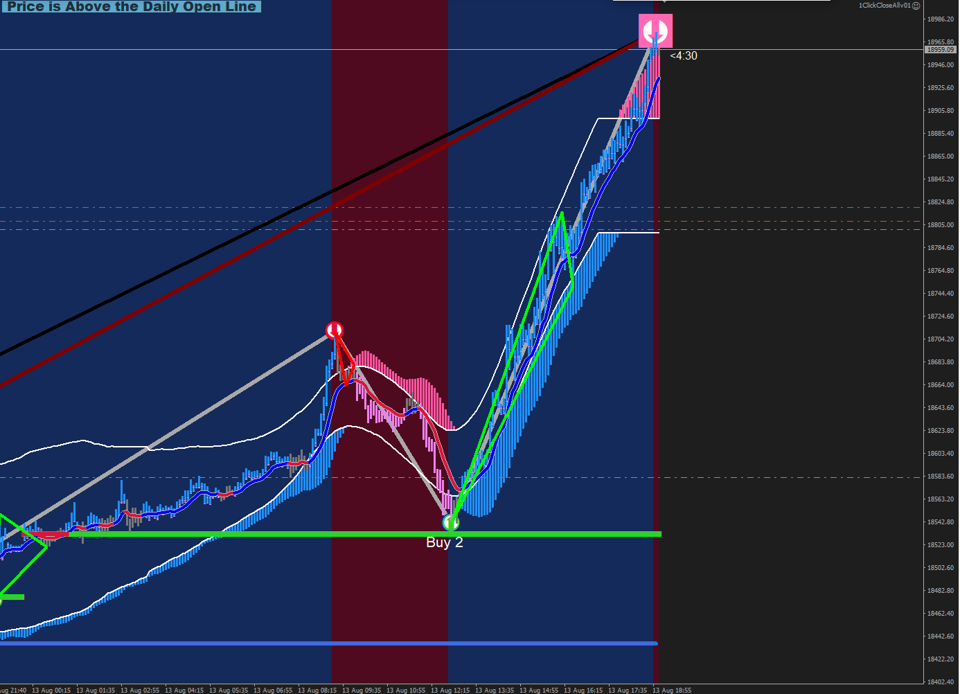 today the nasdaq performed well without ever looking back, tp positioned