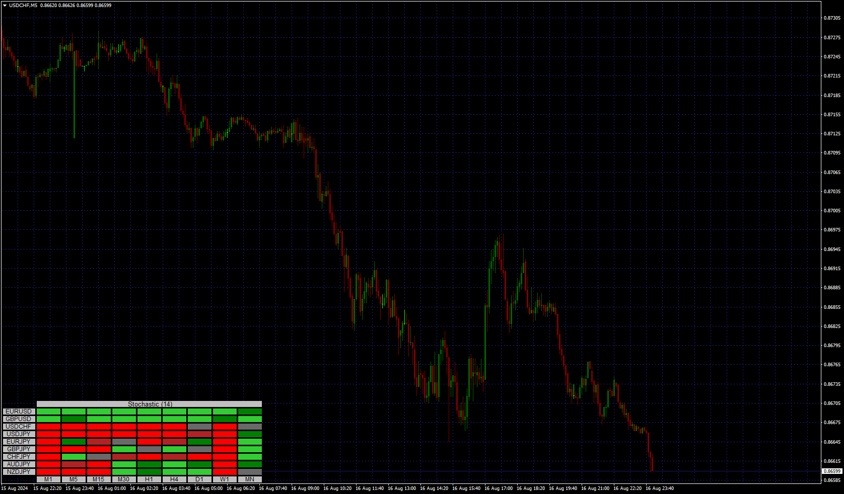 Maybe something like this?TEAMTRADER wrote: Sat Aug 17, 2024 9:04 pm This should be easy, a yes or a no ........is there a Heatmap or Grid of stochastic for MTF to show when it has gone under and over 'level 50' in each timeframe?